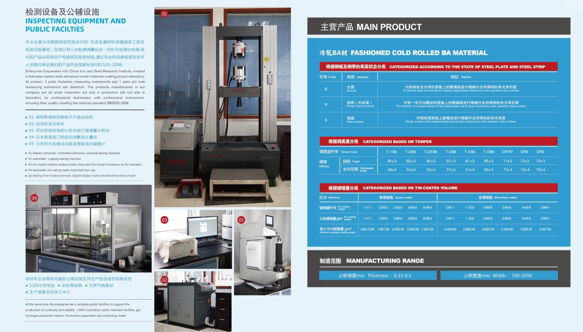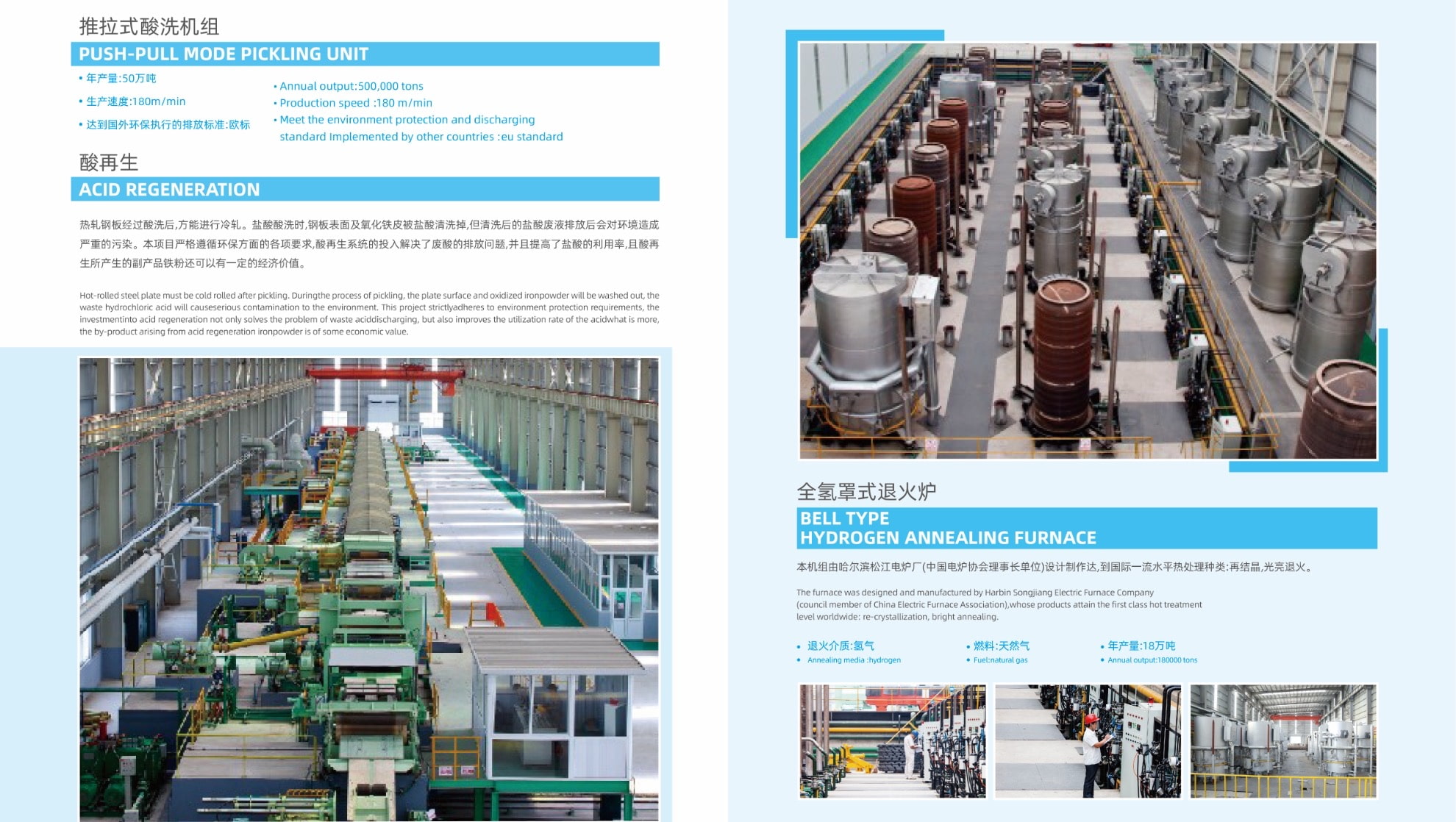 热轧板卷经酸洗、冷轧、脱脂、退火、平整、拉剪处理后进行电镀锡,酸洗、冷轧、罩式退火、电镀锡等生产设备均由国内设计院和装备制造企业设计和制造,推拉式酸洗生产线(年产能50万吨)附带废酸再生设施,电镀锡生产线(年产能20万吨)采用弗洛斯坦电镀锡工艺并使用PT不溶性阳极和IGBT整流电源等先进技术,处于国内较领先水平。
